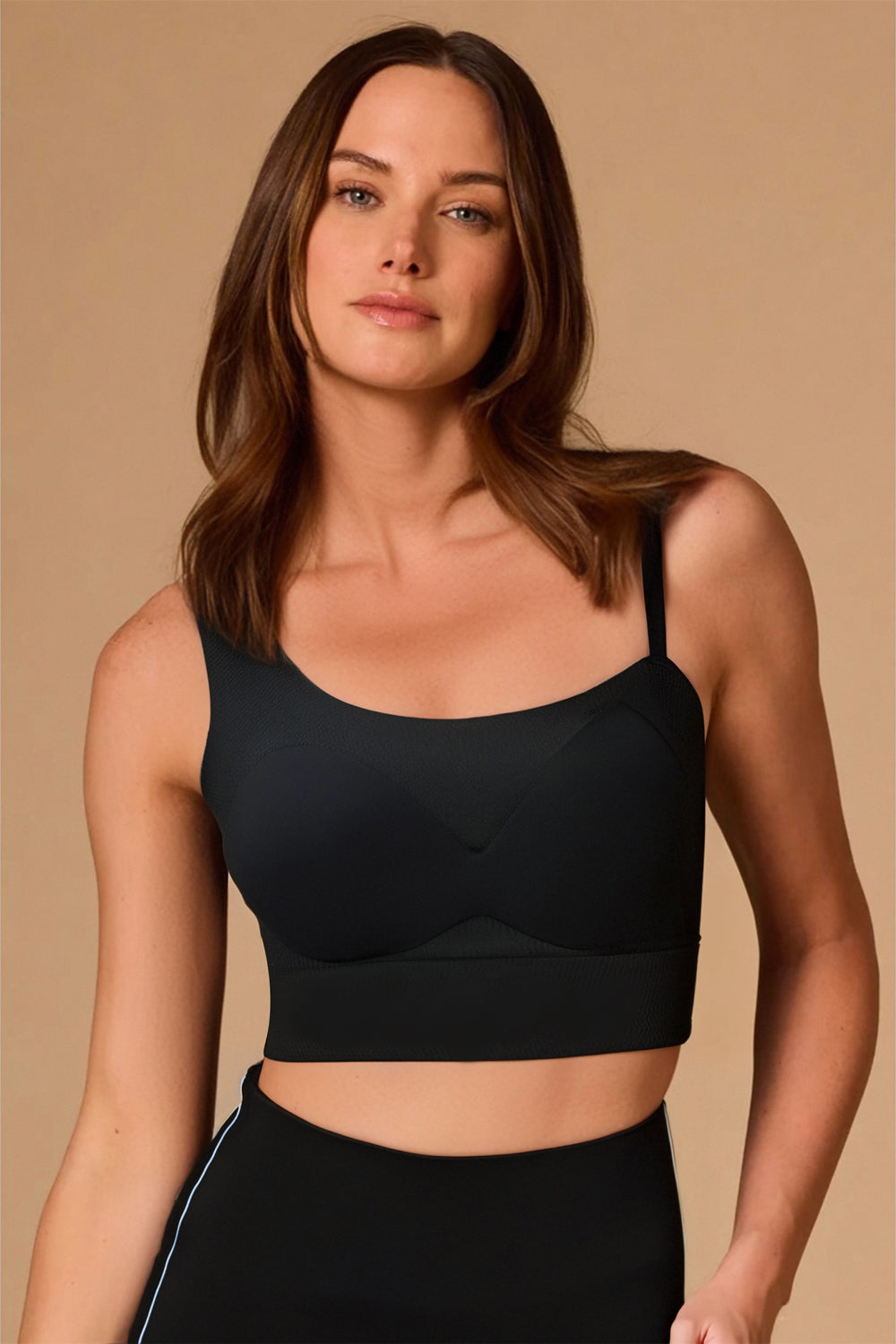 Different from previous designs, we have designed irregular-shaped shoulder straps on both sides for this model, which highlights its specialness. It has an attractive appearance and maintains the comfort of the fit during exercise. This is definitely a combination of specialness and comfort.a top.